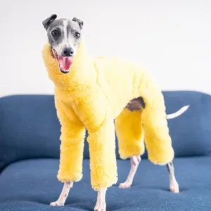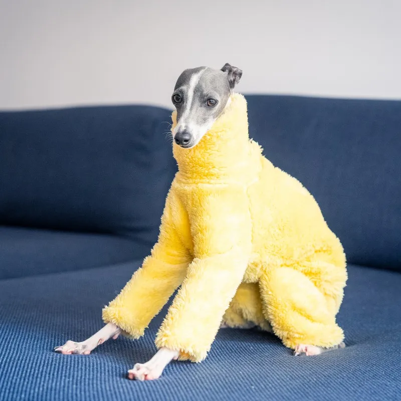 Keep your pup cozy and protected with this high-collar fleece coat, perfect for Italian Greyhounds, Whippets, and Bedlington Terriers. Designed for autumn and winter, it offers lightweight warmth and all-day comfort in a vibrant yellow color.