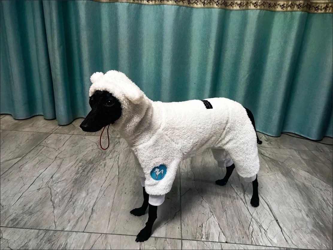 Wrap your dog in luxurious warmth and style with this 4-legged high-neck winter coat, specially designed for medium to large breeds like Italian Greyhounds, Airless Terriers, Beagles, Labradors, and more. Made from soft fleece, this sweatshirt provides ultimate comfort while being windproof and protective, perfect for cold weather.